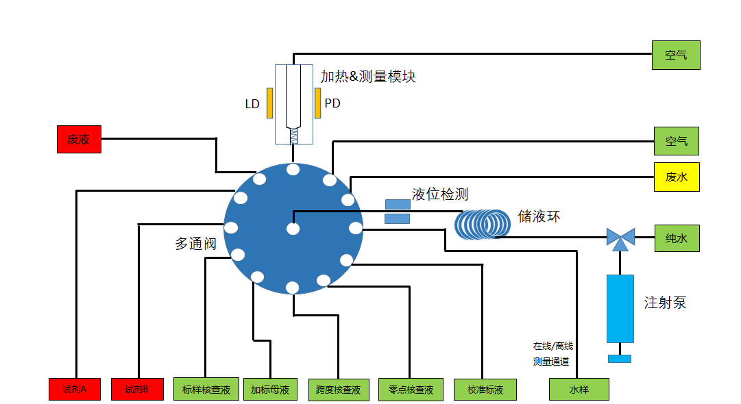 > 采用计量注射泵加多通阀动态进样技术,无泵管消耗,管路不易堵塞,定量精准。